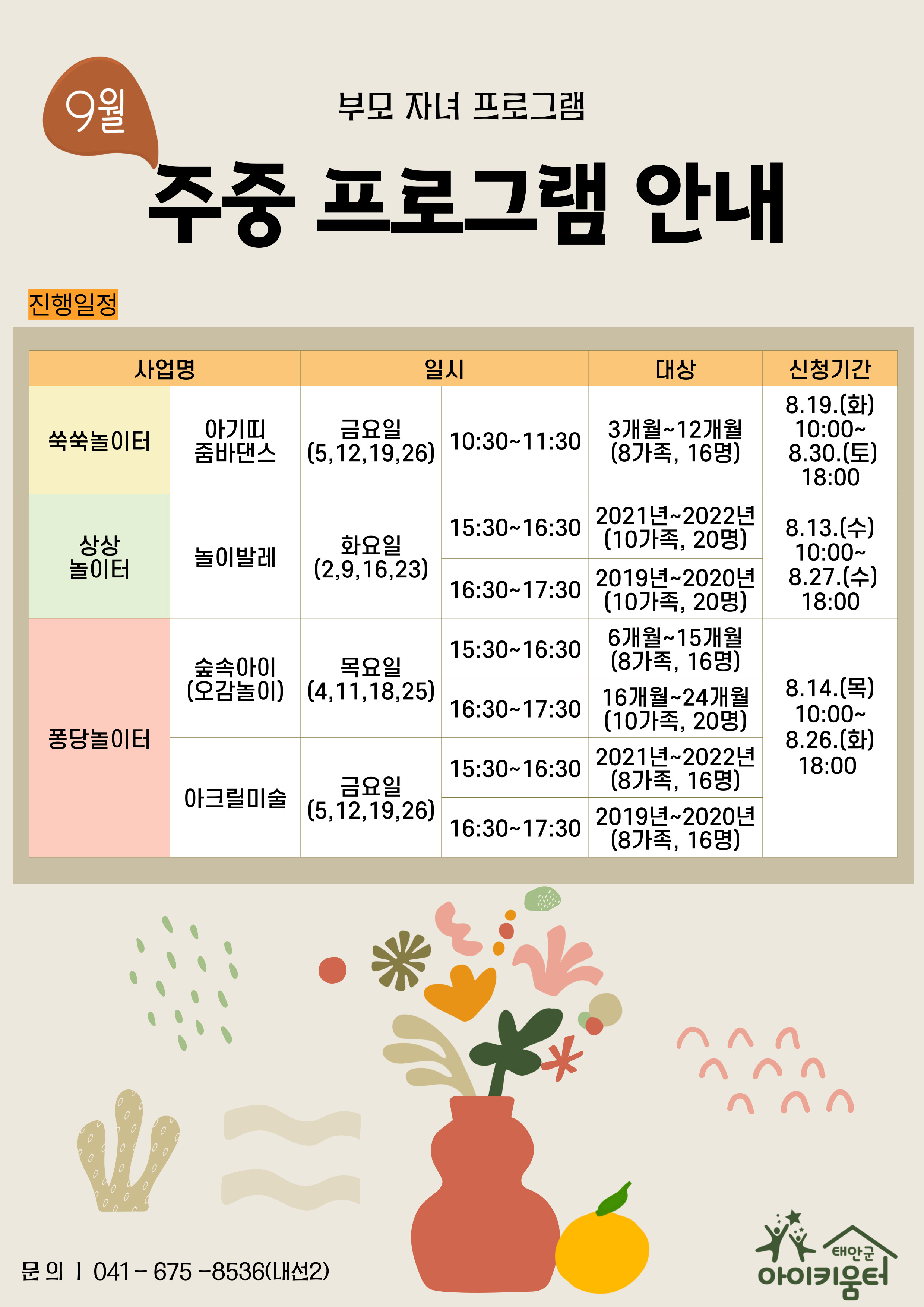 | [ºÎ¸ðÀÚ³à]9¿ù ÁÖÁß ÇÁ·Î±×·¥ ¾È³» | |||||