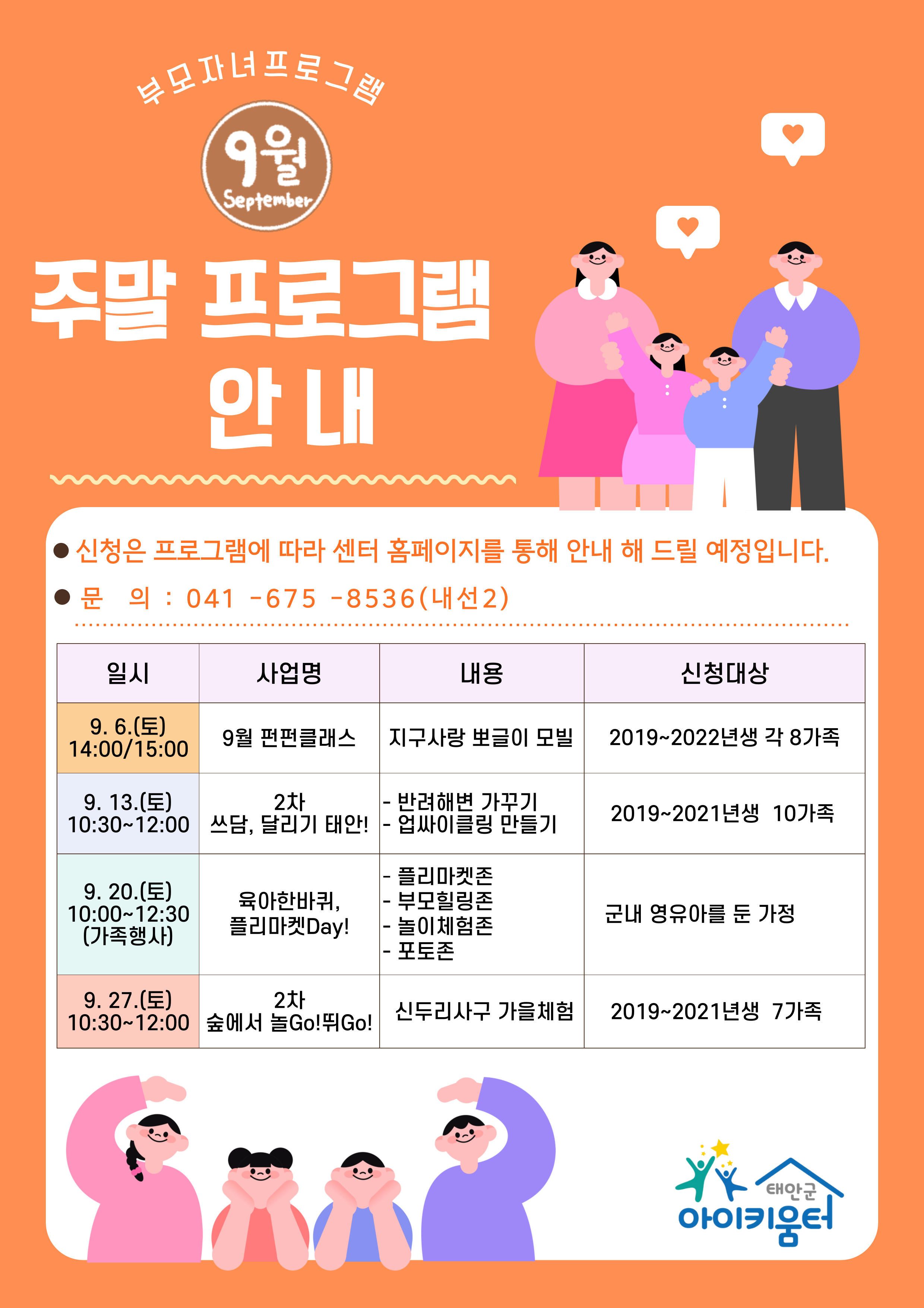 | [ºÎ¸ðÀÚ³à]9¿ù ÁÖ¸» ÇÁ·Î±×·¥ ¾È³» | |||||