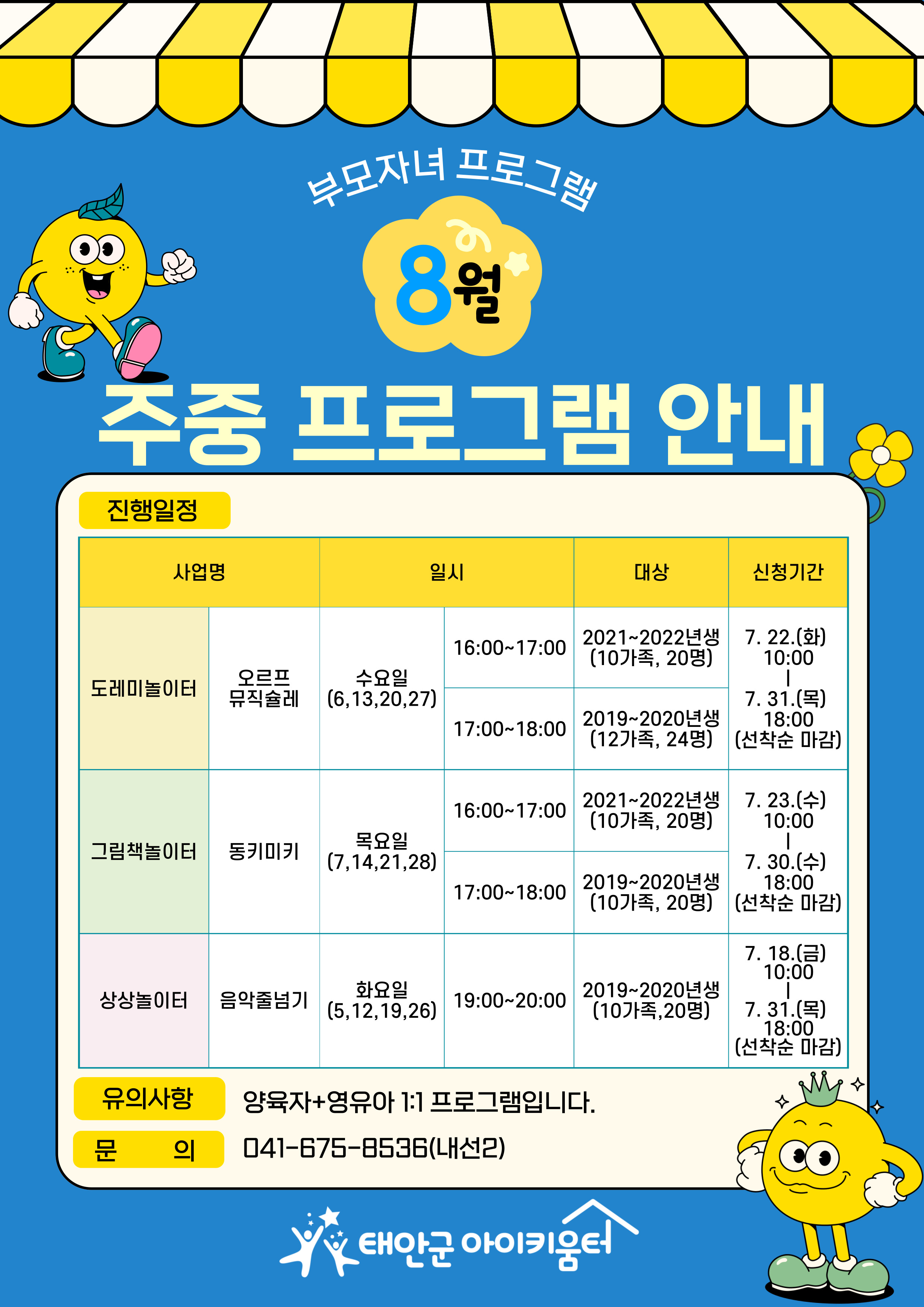 | [ºÎ¸ðÀÚ³à]8¿ù ÁÖÁß ÇÁ·Î±×·¥ ¾È³» | |||||