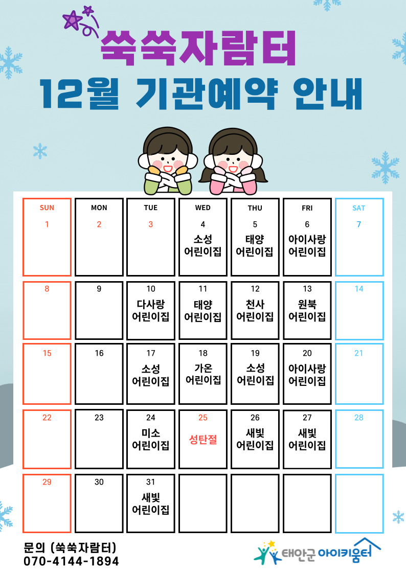 | [¾¦¾¦ÀÚ¶÷ÅÍ] 12¿ù ¾¦¾¦ÀÚ¶÷ÅÍ ±â°ü¿¹¾à ÇöȲ ¾È³» | |||||