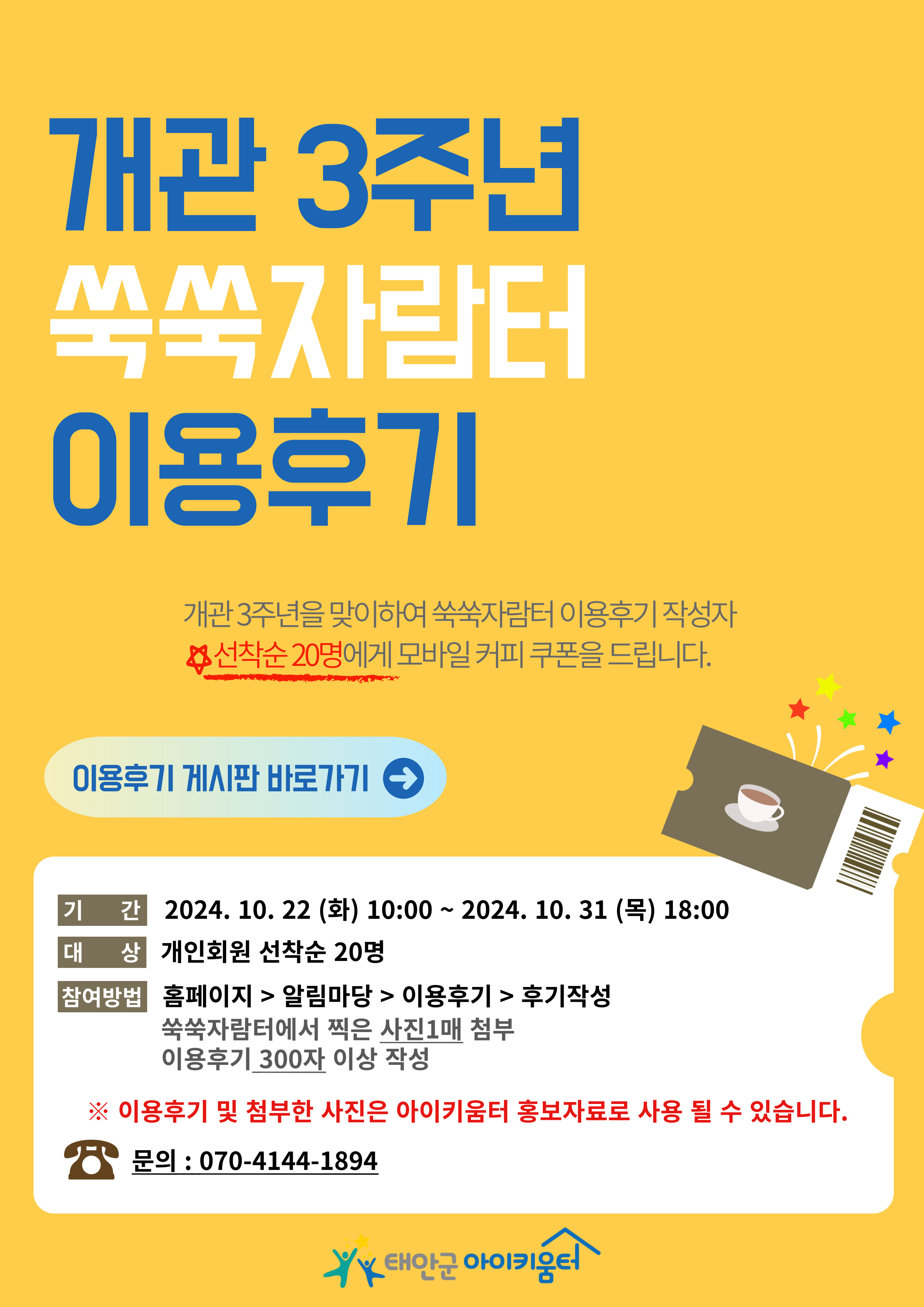 | [¾¦¾¦ÀÚ¶÷ÅÍ]°³°ü3ÁÖ³â ÀÌ¿ëÈıâ À̺¥Æ® | |||||