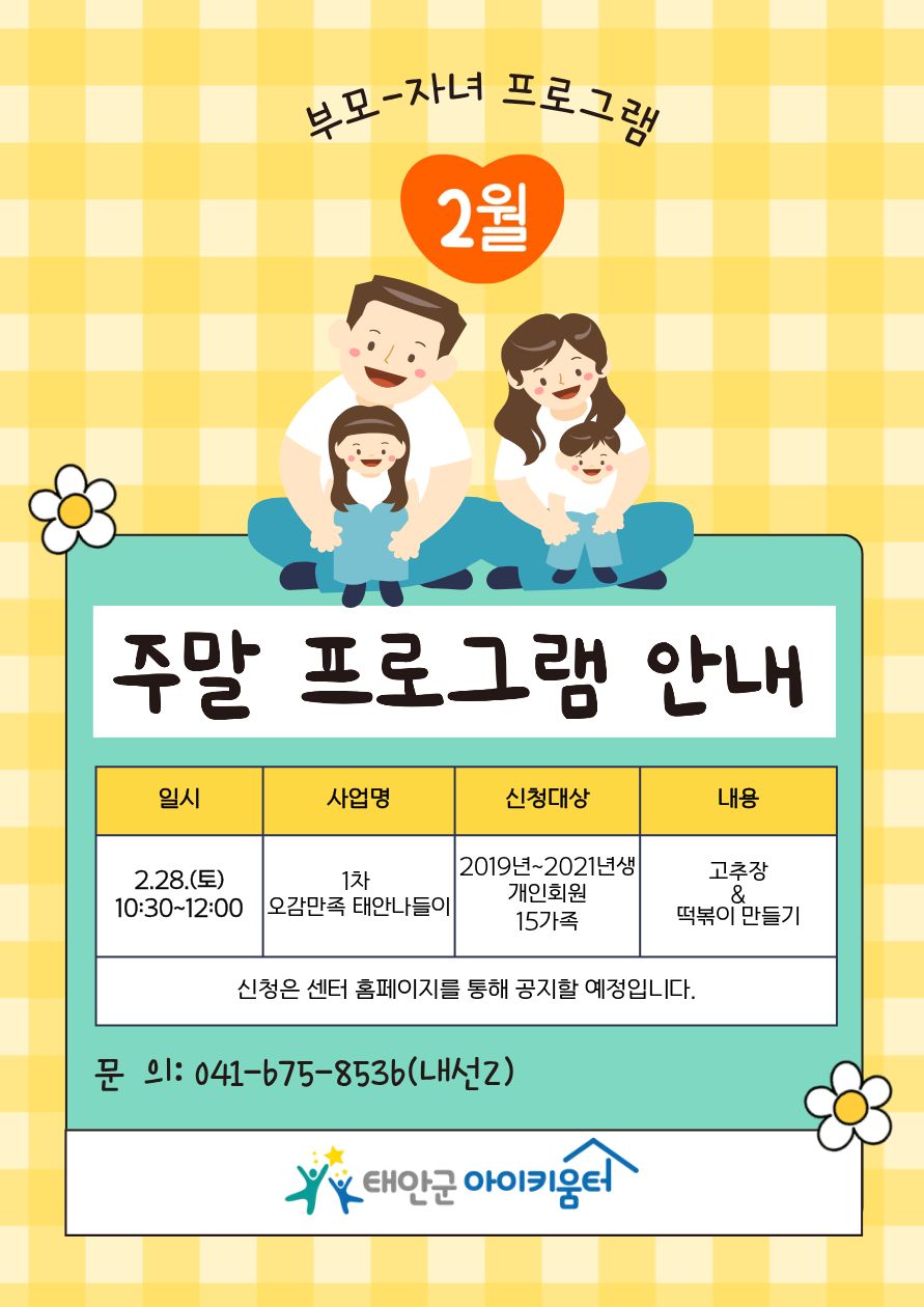 | [ºÎ¸ðÀÚ³à]2¿ù ÁÖ¸» ÇÁ·Î±×·¥ ¾È³» | |||||