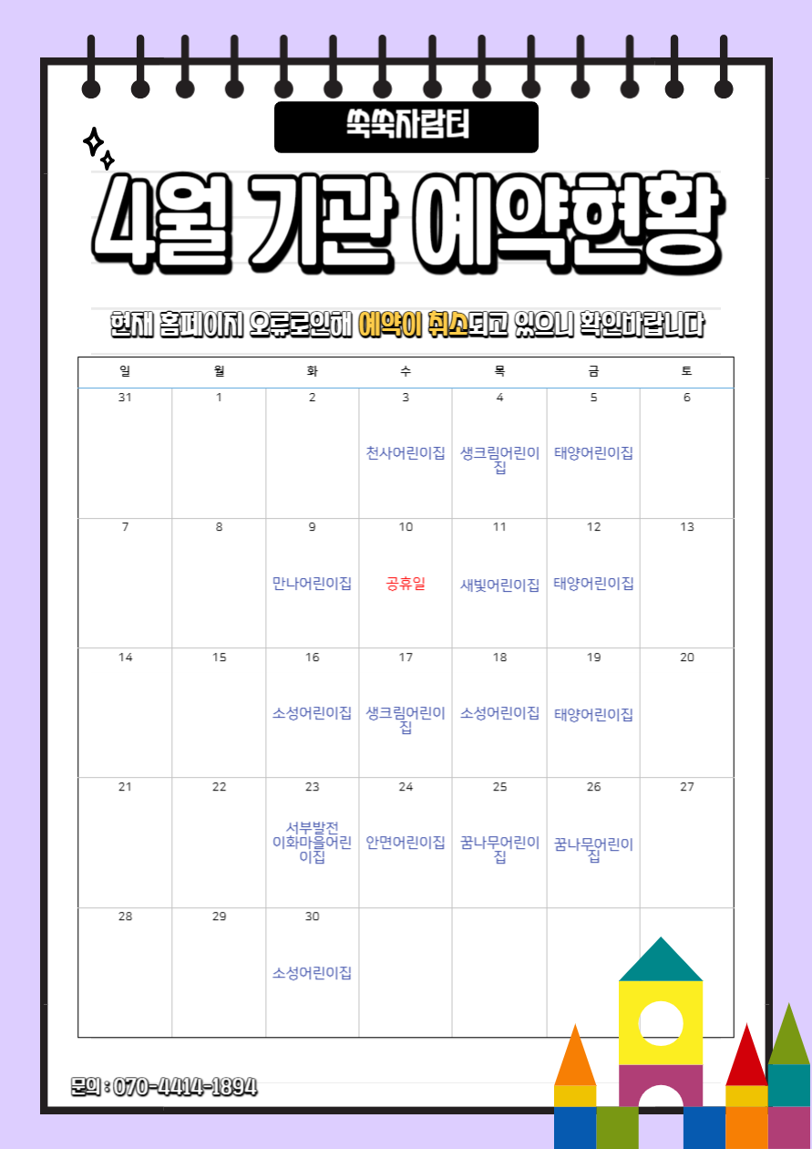 | [¾¦¾¦ÀÚ¶÷ÅÍ] 4¿ù ¾¦¾¦ÀÚ¶÷ÅÍ ±â°ü¿¹¾à ¿À·ù¾È³» | |||||