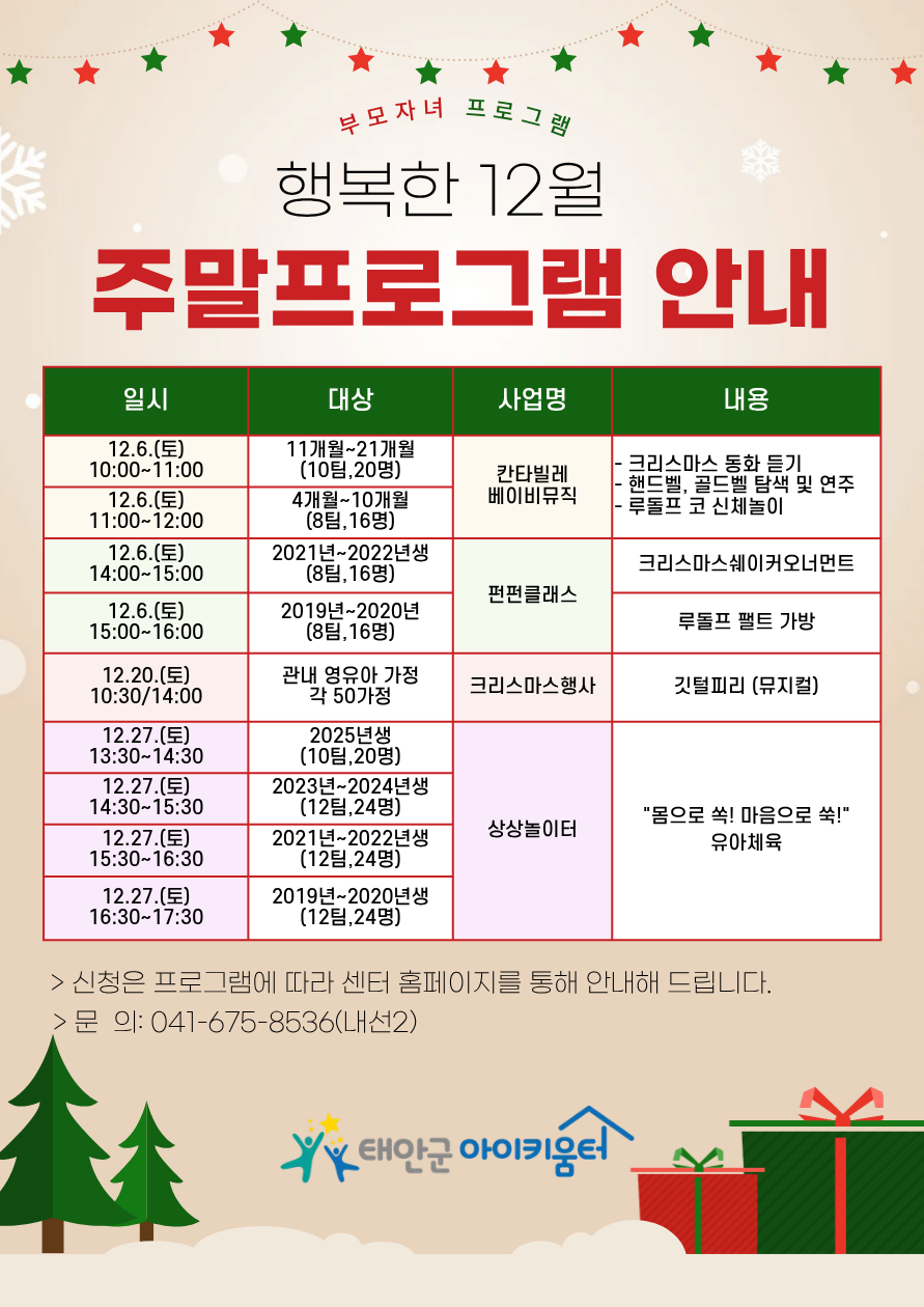 | 12¿ù ÁÖ¸» ÇÁ·Î±×·¥ ¾È³» | |||||