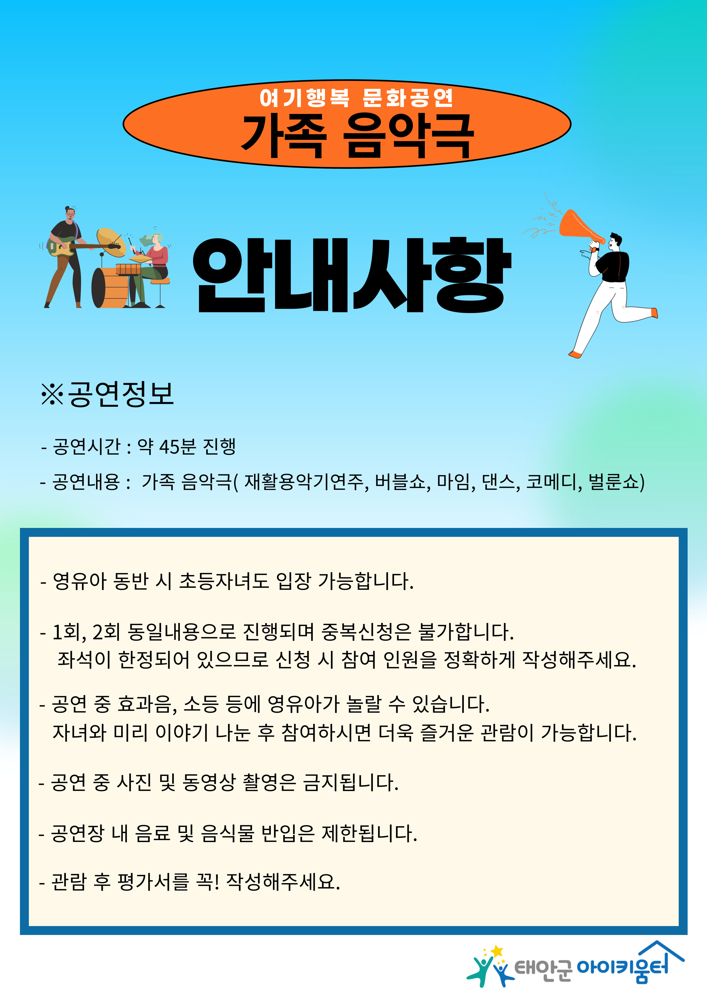 | Àå¼Ò | žȹ®È¿ø 2Ãþ ¾ÆÆ®È¦ | °ø¿¬ÆÀ | °¡Á·À½¾Ç±Ø(À¯»óÅë ÇÁ·ÎÁ§Æ®) |